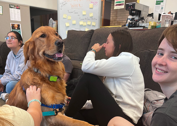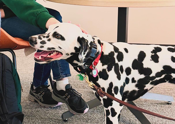 Drop by anytime during therapy animal visits—no appointment needed. Just show up, de-stress and spend time with our furry friends when you need a mental break.
